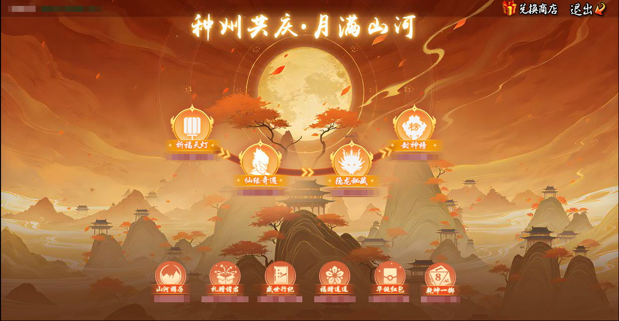 2.活动期间可参与山河游历、礼赠诸君、乾坤一掷、盛世行纪、福赠连连等活动获取纪念币、稀有资源自选包、往期限定活动功法自选包等奖励