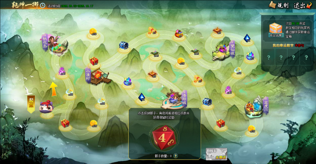 3.张麻子投掷乾坤骰根据所得点数顺时针前进指定格子数,并获得落地所在的奖励