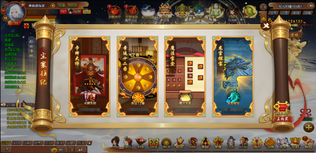 2.活动期间玩家可通过尘寰往纪入口参与卡牌大师、龙宫探宝、幸运十二番、魔法宝盒等活动